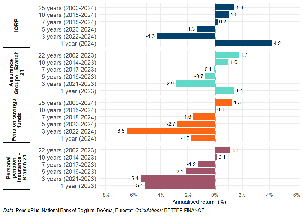 Real net returns of Belgian long-term and pension savings