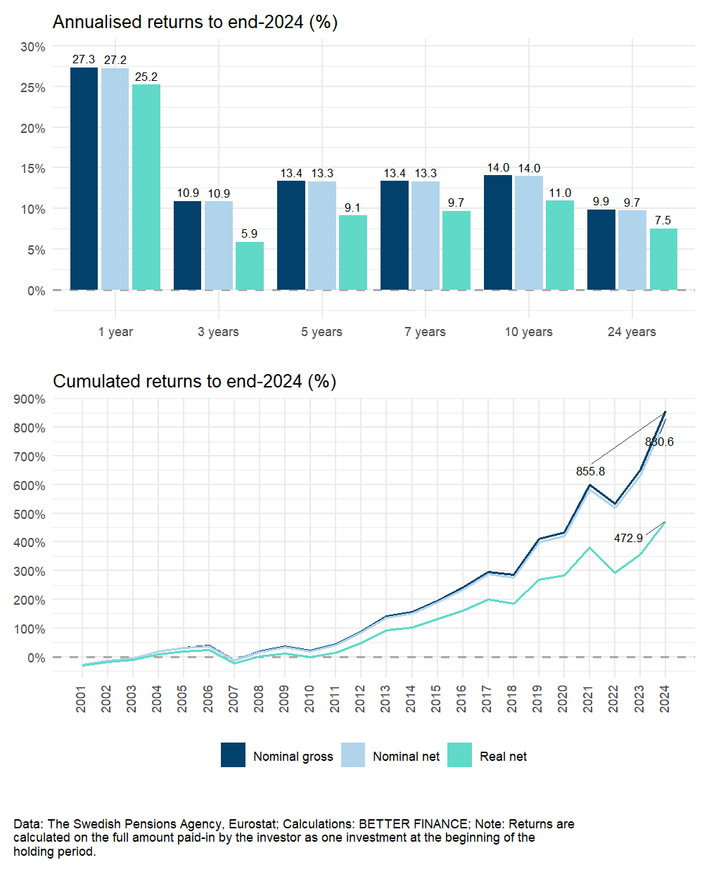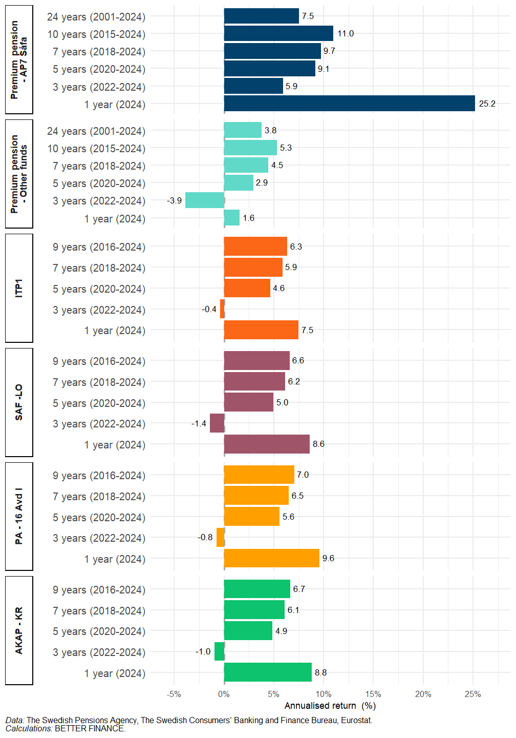 | Data: The Swedish Pensions Agency, The Swedish Consumers’ Banking and Finance Bureau, Eurostat; Calculations: BETTER FINANCE | |||||||