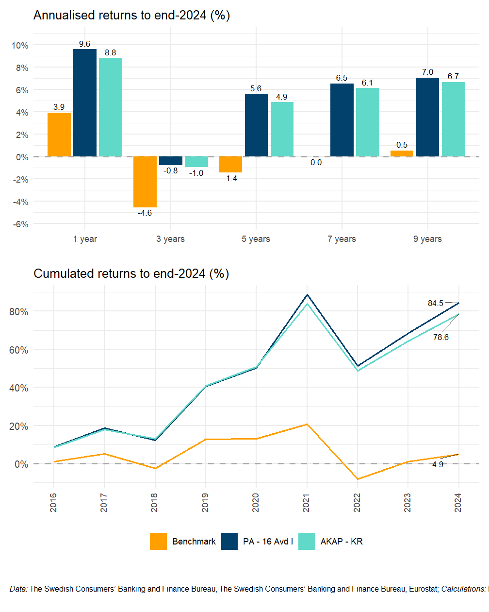 | Premium pension - AP7 Såfa | 25.2% | 5.9% | 9.1% | 9.7% | 7.5% | 11.0% | end 2024 |